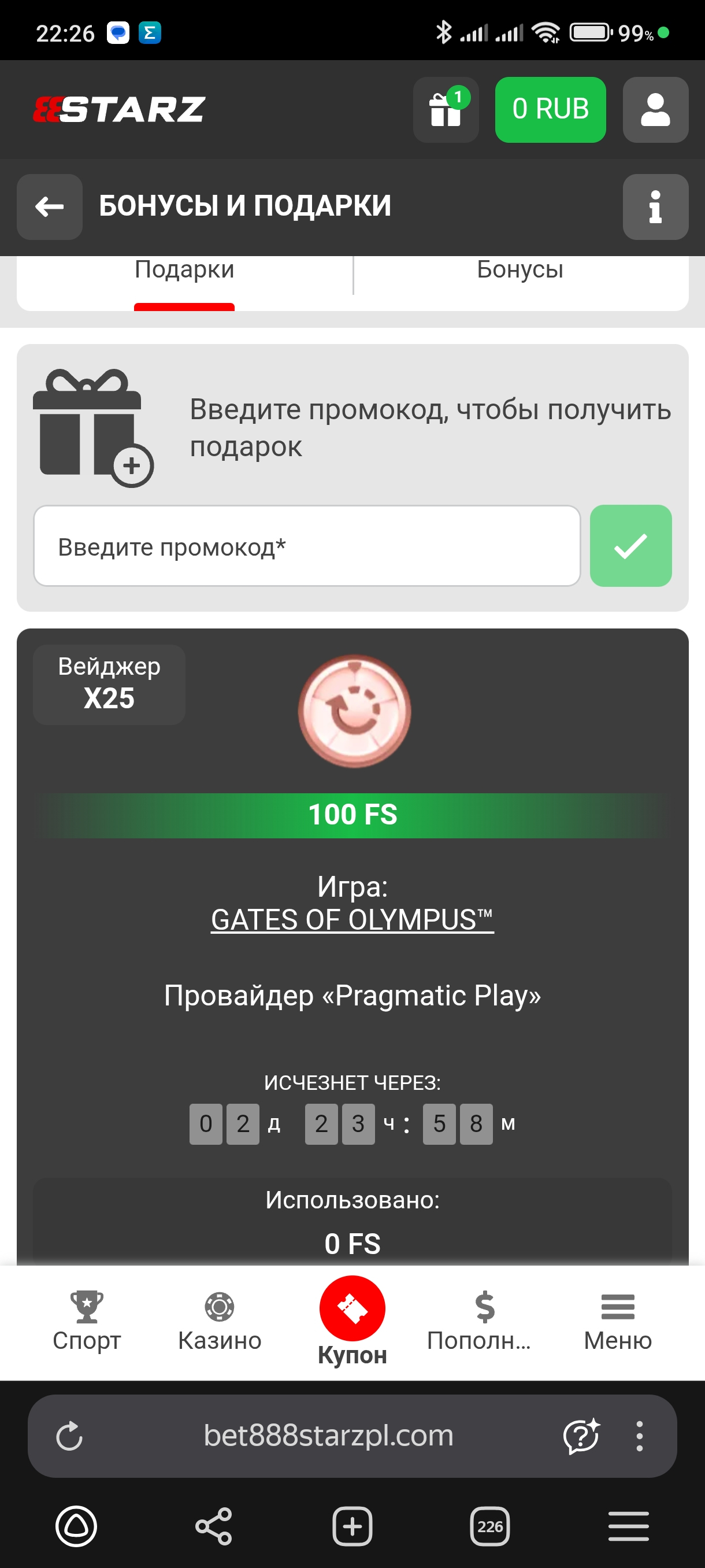 Для тех, кто хочет начать играть, не вкладывая собственных средств: 888starz даёт бездепозитный бонус при вводе промокода BOBFREE.