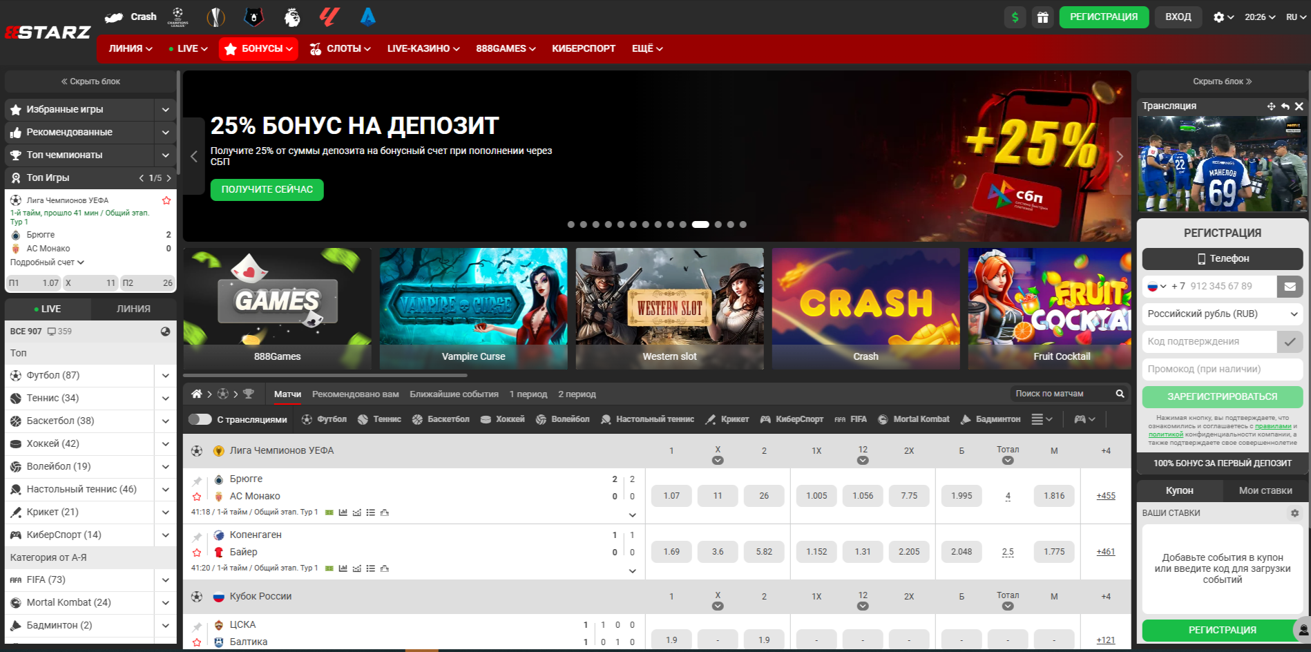 ✨ Зарегистрируйтесь в казино 888Starz.