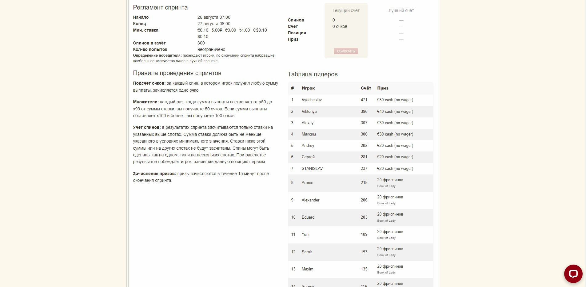 Вы увидите какие слоты или провайдеры участвуют в данный момент,а также все условия участия