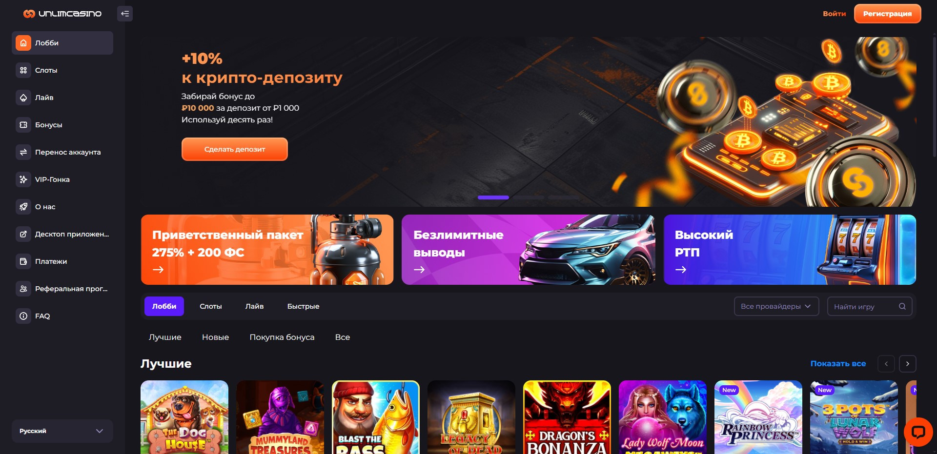 UnlimCasino — современное онлайн-казино, которое быстро набрало популярность среди игроков благодаря щедрым бонусам и надежным выплатам. Платформа сочетает удобный интерфейс, большое количество игровых автоматов и привлекательные акции для новых и постоянных пользователей.